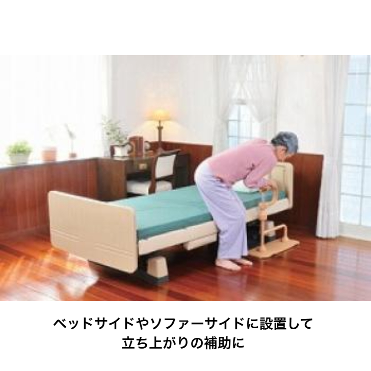 ベッドでの離床動作や、いすなど少し高さのあるところからの立ち座り動作をサポートします。