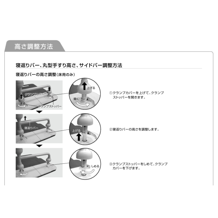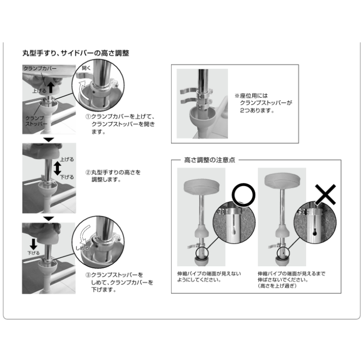 身体状況や用途に合わせて、丸型手すりの高さを無段階に調整