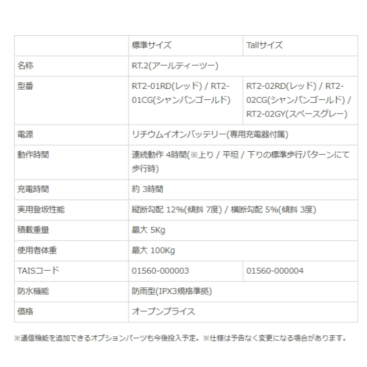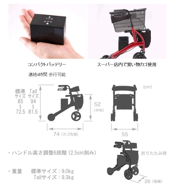 動作時間 :連続動作 4時間(※上り / 平坦 / 下りの標準歩行パターンにて歩行時)